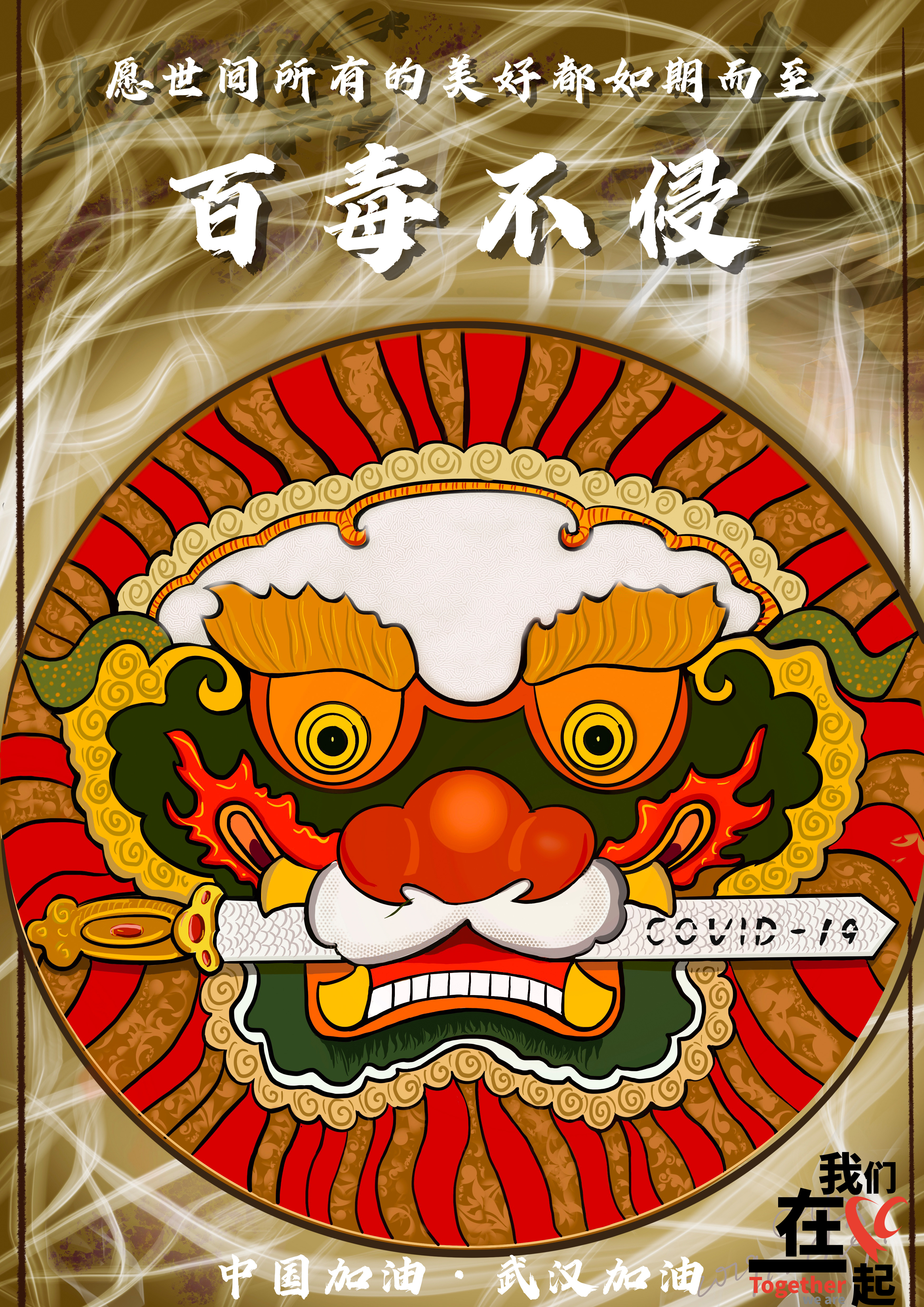 创意说明:传统建筑门饰“铺首”,驱魔辟邪,驱散病毒,希望各位百毒不侵。(作者:陈永兴 )